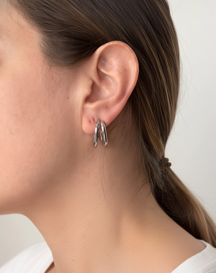 Brinco Argola Oval Fio Duplo Tainá em Aço Inox - Cod. 10.149